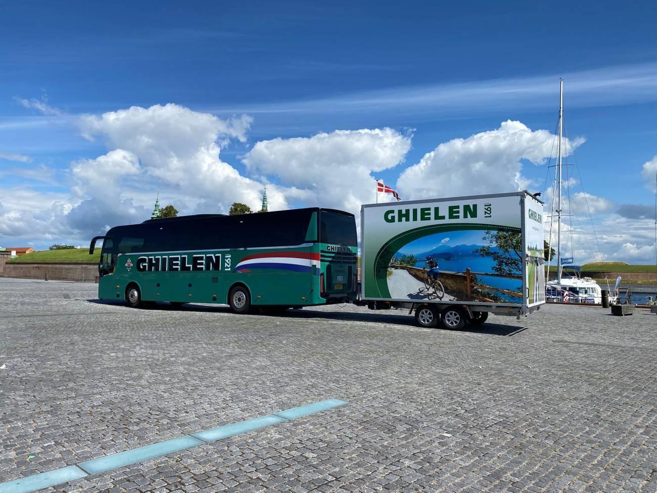 Logo van Ghielen Touringcarbedrijf met hofleverancier embleem